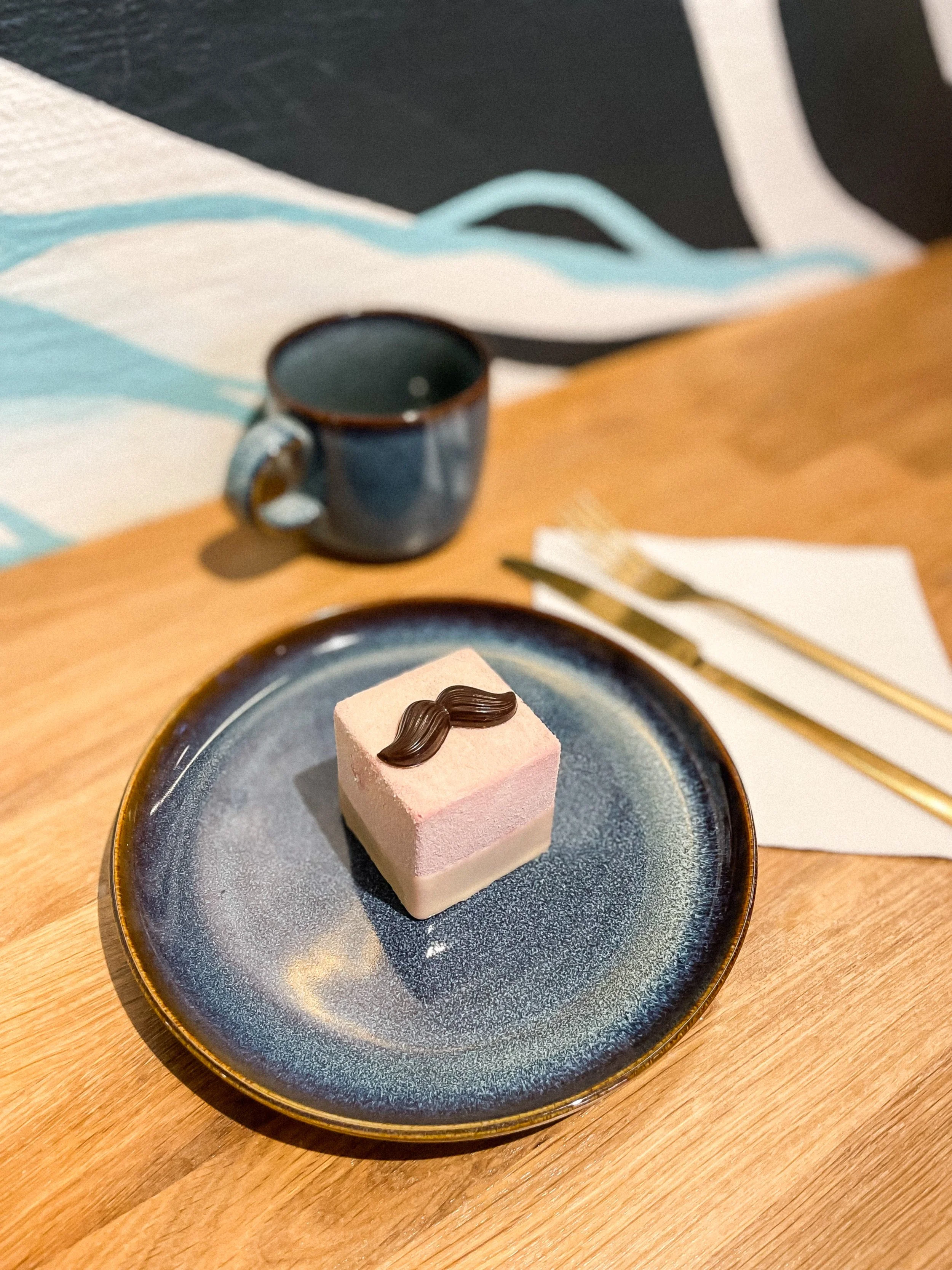 Rose flower & raspberry mousse, chocolate & Java pepper ganache, almond chocolate sablé.
